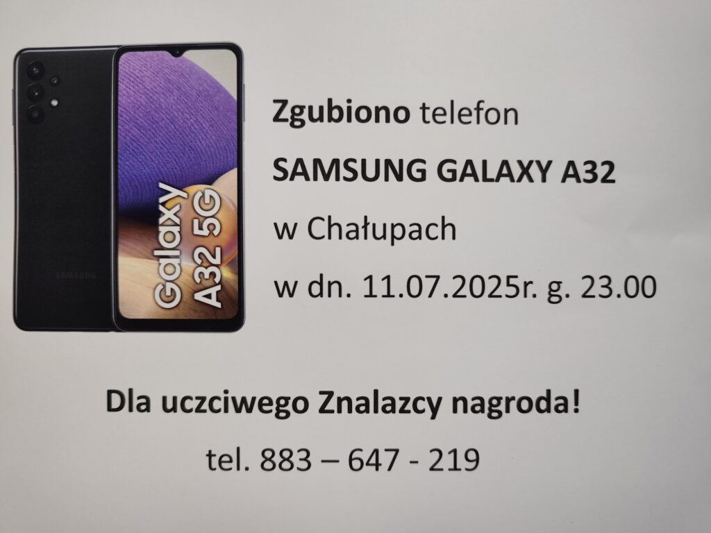 Zgubiono telefon Samsung A32 w Chałupach 11.07.2025 w czarnym zamykanym etui