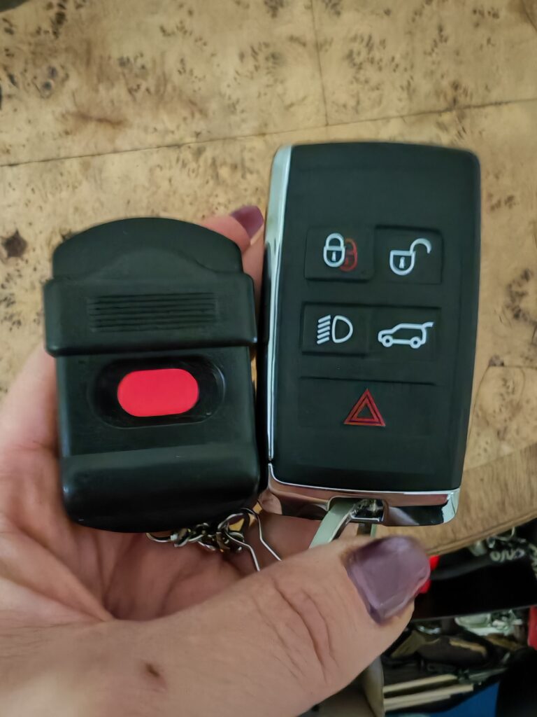 Kluczyki do samochodu marki Landrover. Wraz z pilotem i zwykłymi kluczami