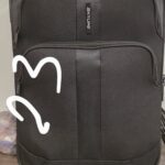 Czarna walizka z czerwoną nicią. Rzeczy osobiste i wartościowe. Kosmetyki, perfumy, ubrania, bielizna, elektryczna szczoteczka do zębów, pieniądze.